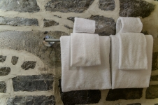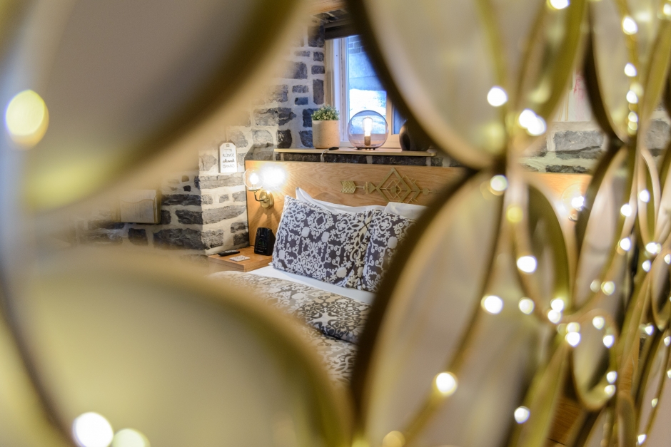 La chambre Petit Quartier peut accueillir deux personnes. Avec murs de pierre, cette chambre se situe dans la vieille partie de l'auberge, maison d'origine qui date de 1909. Elle a été nouvellement construite.